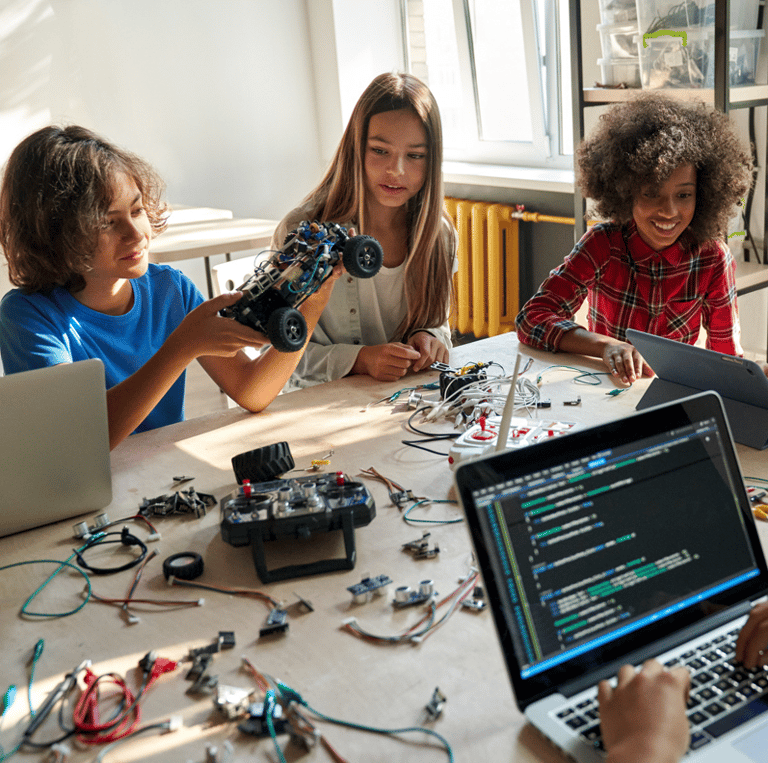 Ensino prático de tecnologia para desenvolver habilidades essenciais desde a infância até a adolescência.